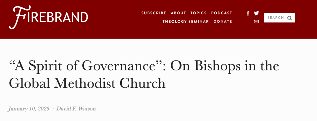 Rev. Dr. David F Watson has nine powerful revisions to the office of Bishop in his Firebrand Article “A Spirit of Governance”: On Bishops in the Global Methodist Church.