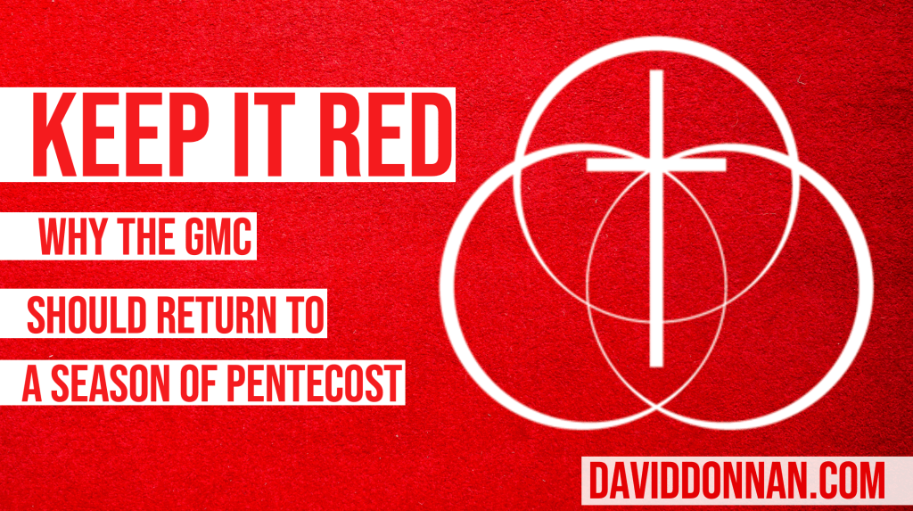 […] “Keep It Red: Why the GMC Should Return to a Season of Pentecost” by David Donnan. “Out of all the challenges facing the GMC the liturgical colors might not even crack the top one thousand. Still, let’s keep the red out and remind ourselves about the Holy Spirit, the birth of the church, and this important aspect of the life God is calling us to.” (Added 5-13-2024) […]