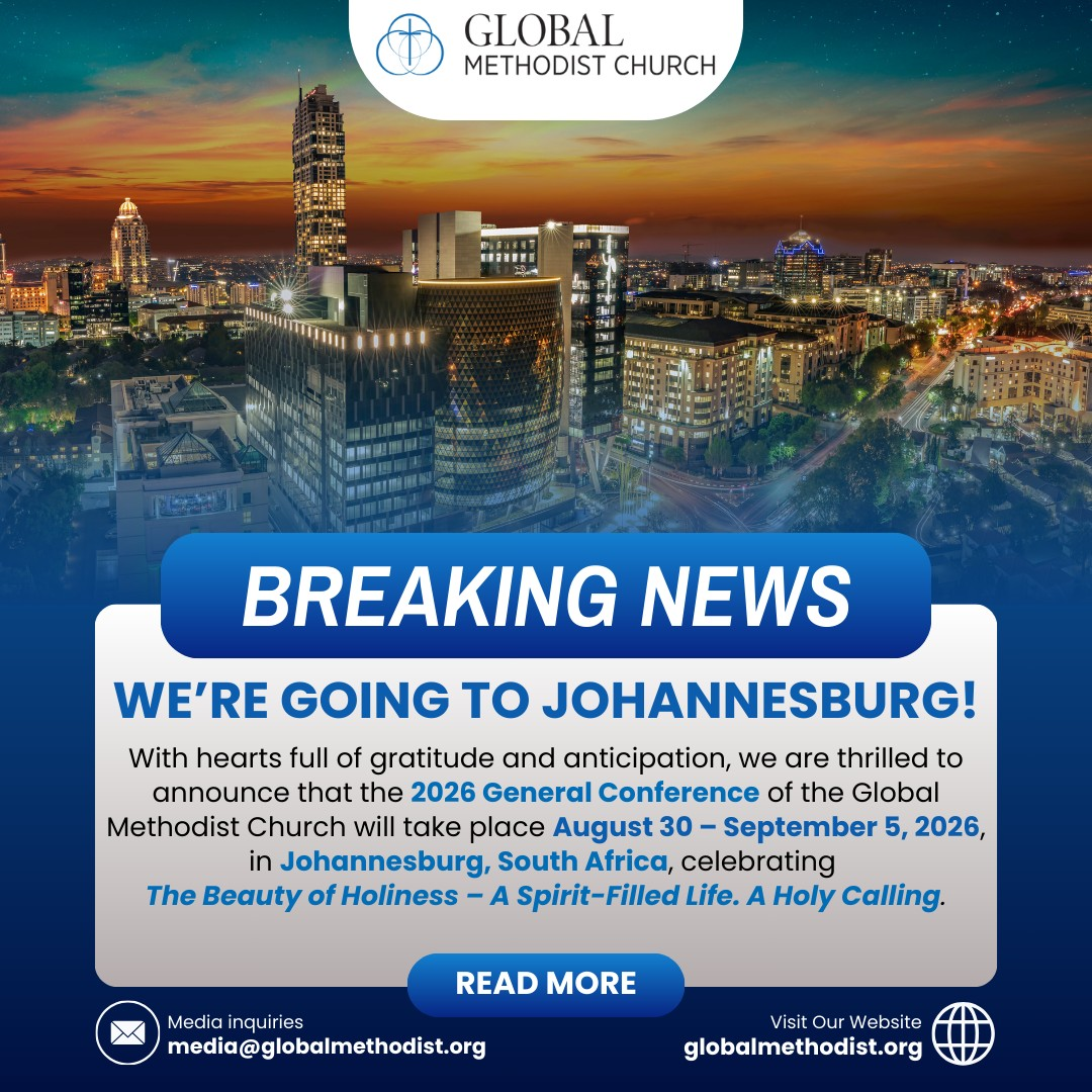The Commission on the General Conference of the Global Methodist Church announced the 2026 General Conference will be held in Johannesburg, South Africa, from August 30 through September 5, 2026.