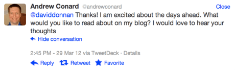 This a post to a twitter buddy of mine, Andrew Conard. Andrew has an outstanding blog that is one of my favorite resources for ministry. One of my favorite post I recommend to pastor friends is his outline and comments on a service of Death and Resurrection. Also, he gets to hang out with one my heroes, Adam Hamilton. I could not resist responding to this tweet with a post on my blog.